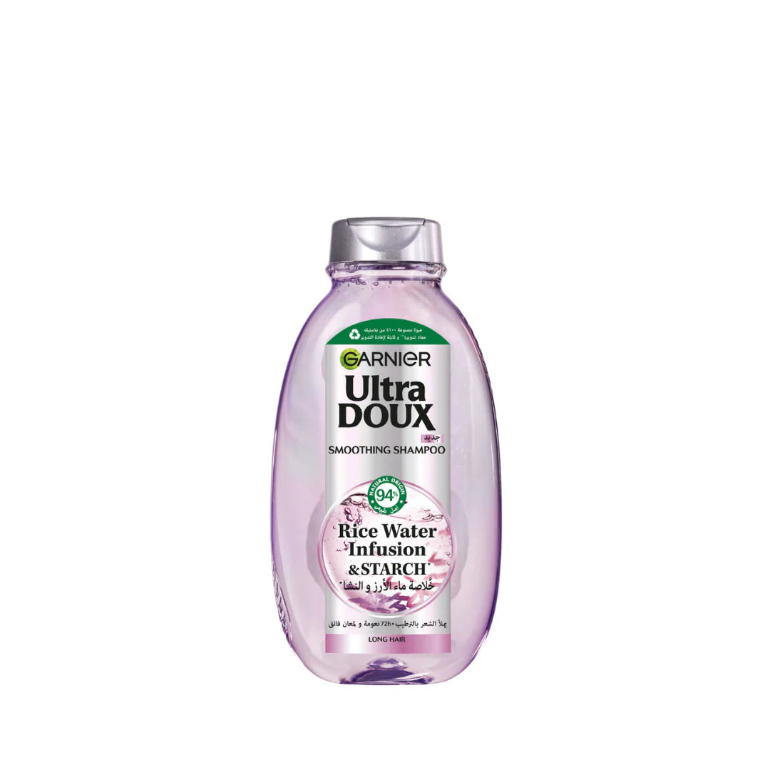 Strengthen and protect fragile hair with Garnier Ultra Doux Rice Water Shampoo, inspired by traditional beauty rituals. Infused with rice water and natural extracts, this gentle formula cleanses while reinforcing hair fibers, leaving strands softer, smoother, and visibly stronger from root to tip. Perfect for fragile or breakage-prone hair.